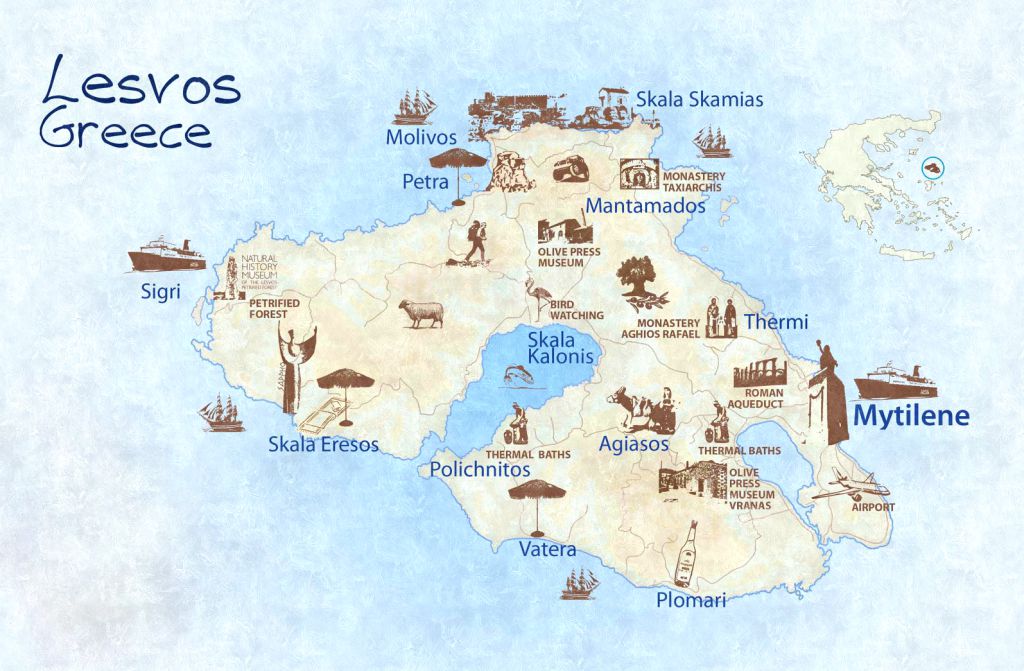 midilli adası harita